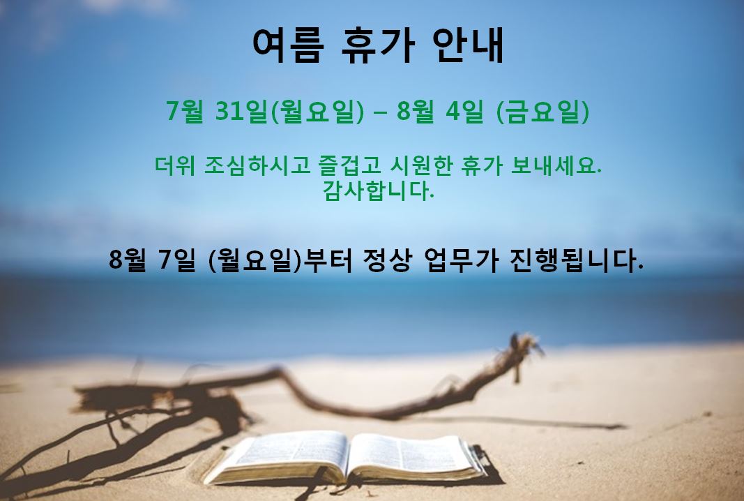 공지여름휴가 공지 / 7월 31일(월요일) ~8월 4일 (금요일) 등록일 : 2017.07.26조회수 : 6694 이전글 2017 POWER-GEN EUROPE 참가 2017.07.11 다음글 추석휴가 / 10월 2일(월요일) ~10월 9일 (월요일) 2017.09.26 목록보기